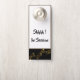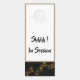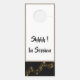 This door hanger is double sided and in black and white with a gold coloured stream of notes on staff. at the bottom. Upper edges surrounded by a silver-grey border with sample text of "Shhhh ! In session". Customise this item to your liking with what ever colour or phrase you wish, or buy as designed.