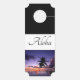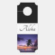 Greet your guests with this door hanger that takes the place of a welcome mat inside/outside home, apartment or hotel room. Shown here in black with coordinating white and grey colourings. "Aloha" text on front and back with a lovely Hawaiian sunset photo. Customise this item or buy as designed.