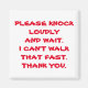 I'm always writing notes to tell the delivery person to knock loud and wait because I can't walk fast this way they'll wait for me. Well one day I was expecting a delivery and put the note on my door and it started to rain and the note got wet and I never heard anyone knocking and didn't get my package. I came up with the idea of writing on door hangers but that also got ruined from the rain. Finally, I created a magnet and even if it rained the magnet didn't wash away. I've made several magnets for everything and as a result I have no problems missing people at my door.