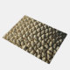 Seeds of a sunflower are tightly arranged in this photograph of a dried sunflower head. Arched lines are noticed in the arrangement of the white shells with black lines.