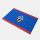 Welcome guests with island pride using our door mat featuring the flag of Guam! This door mat proudly displays Guam's distinctive flag design, which features a dark blue field with a narrow red border and a central red rectangle. Inside the rectangle is a silhouette of a flying proa, a traditional outrigger canoe used by the Chamorro people of Guam, with a blue sky and sea.