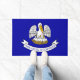 Welcome guests with Southern charm using our door mat featuring the flag of Louisiana! This door mat proudly displays Louisiana's iconic flag design, which features a field of blue with a white pelican feeding her young with drops of blood, symbolising sacrifice and nurturing, surrounded by a white ribbon with the state motto "Union, Justice, and Confidence."