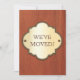 This moving announcement portrays a metal-like plaque mounted on a wooden background to mimic an engraved door plaque. The customised moving information goes within. Easily customised to make a housewarming party invitation. Available with matching products.