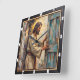 A visually rich wall clock depicting Jesus extending His hand to knock on a rustic wooden door, glowing with an ethereal warmth that beckons. The profound scripture, "I stand at the door and knock..." (Revelation 3:20), is thoughtfully placed within the artwork. This embodies a message of hope and personal connection, making it a contemplative and beautiful addition to any home or office.