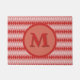 Argyle pattern shows in three shades of red background colour, in alternating rows of dark, medium and light red diamonds. Central to the mat is a red circle with a darker red outline. Centred in the circle is an initial that may be personalised. Letter will show with a drop shadow.