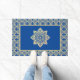 This Beautiful Doormat will add an exotic element to any home. It features a border of small medallions and A beautiful blue field with a large centre medallion. Is It any wonder that these tiles were originally inspired by the tile maker's favourite rug? The colours are yellow and peach on a blue background. Be sure to check out the other items in this collection. By Oregon Tile maker Fay Jones Day.