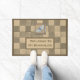 This attractive doormat is designed for a Craftsman Bungalow. The design is ochre and tan tiles. These are the very tiles that I have made for so many fireplaces. The centre tile is a moth tile whose design comes from an old Arts and Crafts Stained Glass window pattern. You can compose your own message. Are you serious or funny? It's your turn to be creative.