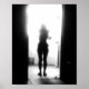 She lingers on the threshold, light swallowing form, form resisting meaning. There’s no decision, only presence—an echo held in the space between one step and the next.