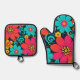 Dopamine Decor– Bright Funky Flowers-Retro Oven Mitt & Pot Holder Set
