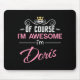 Of Course I'm Awesome I'm Doris - in mixed white and pretty pink casual and cursive font lettering with whimsical scroll accents and topped with a golden crown.
