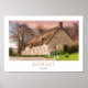 Vintage Railway style poster featuring a Dorset thatched cottage, England.