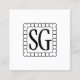 A square business card template with initials placed inside a square box with a decorative frame. In this version the initials are in the Integrity bold font. Name and profession/job title along with telephone, email and website address in black on the reverse side on a white background, using variations of the Matt Antique font.