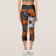 Dot Mandala Flower White Orange and Black Capri Leggings