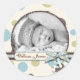 Dot Print with 3D-look Bow Birth Announcement Classic Round Sticker