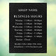 Easily create a custom business hours sign with your shop name, business hours, and contact info! This decal door sign features geometric dots for a sleek and professional storefront. Try it out and see how it looks. Adjust the days and hours to suit your business, and add your contact details. Several sign options available for different applications. See the "Business Signs" collection for more helpful and informational business signs.