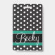 Classic design white dots on a black background. Badges hold up well on luggage. They don't crack or break easily. Add your name, initials, etc. for personalisation.