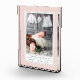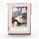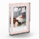 Create a keepsake of your baby girl's arrival with our sleek freestanding acrylic block, featuring an elegant pastel colour palette of blush pink and dove grey. Design showcases a single vertical orientation photo with baby girl's name and birth stats, framed by a subtle dotted pattern in blush and white with a grey border.