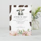 This first birthday invitation features watercolor cow print, a cute baby cow and blush pink florals. This birthday invite is perfect for any age,