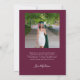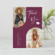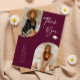 Simple and modern graduation thank you template card to send out to those who congratulated you, attended your graduation party, gave you gifts etc. Two arches for your photos with a script text that says "thank you." You can add a third picture on the back and the message is editable. The background is cranberry red.