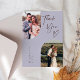 Elegant and rustic wedding thank you card featuring a double arch lilac frame with text that says "thank you" with a heart. You can have 2 photos on the front and 1 on the back.