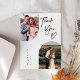Elegant and rustic wedding thank you card featuring a double arch white frame with text that says "thank you" with a heart. You can have 2 photos on the front and 1 on the back.
