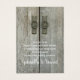 Practice some wedding kindness when you arrange a donation card at your guests' marriage reception place setting. The charming Double Barn Doors Country Wedding Charity Favour Card states that in lieu of a traditional party favour, a donation has been made in their name to charity. Customise the card by adding in the name of your favourite charity and the personal names of the bride and groom. These casual yet classy custom rustic ranch theme favours features a quaint farm style photograph of weathered barn wood doors with elegant hardware.