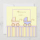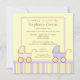 Twice as nice! That's the announcement on this baby shower invitation that features adorable pink and blue baby carriages with pink, blue, yellow, and tan stripes on a yellow background.