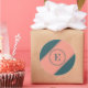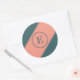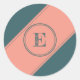 Seal the mail or other item with this round sticker featuring a centered geometric double circle in teal over a pale salmon background. Personalize the text field with an initial letter or click customize to select a font color, size, and style your prefer.