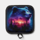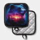 Double Exposure Bear Portrait With Vibrant Sunset Pot Holder