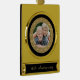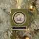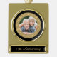 This 50th Anniversary keepsake ornament features your own photograph within a gold ornate pattern frame. The gold circle frame is placed on a dramatic black background. The bottom portion has your custom text in gold on a black background; make it say whatever you'd like! An elegant and classy keepsake gift for any couple celebrating their Golden Wedding Anniversary.