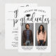 It's a double graduation party! Announce the achievement of two graduates and invite family and friends to celebrate with stylish custom photo joint graduation party invitations. The pictures and wording are simple to personalise, and the colours can be changed using the Zazzle design tool. (IMAGE PLACEMENT TIP: An easy way to position a photo exactly how you want is to crop it before uploading to the Zazzle website.) This template is a combination announcement card on the front with the grad party invitation on the back. The modern black and white design features handwritten style script calligraphy with a mortar board cap, elegant classic typography, and two photos of your choice, such as senior pictures or images from the commencement ceremony. This graduation invitation card is a stylish way to announce a special day celebration for any two grads, such as siblings, best friends, cousins, twins, brother and sister, etc. Congratulations to both of the graduates!