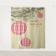Modern and stylish double happiness chinese lanterns in bright red hanging on dark grey silhouette tree branches on a simple beige background photo backdrop tapestry. An original outdoor / garden themed chic chinese wedding design.