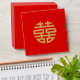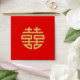 Uniquely designed red envelope, with gold colour double happiness symbol. A red envelope containing money is considered very auspicious. You can increase your money luck by carrying money that adds to an auspicious number, such as eight or nine one-dollar bills or a twenty, five, and two one-dollar bills (27) and so on.
