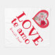 Passion red is a mix of red rosas in a double heart, circle, stars in a white surface with a word LOVE te amo and signed for Araceli Dent.