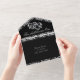 This romantic design features an elegant black background with glitter borders, a delicate silver hearts intertwined, details for the event in elegant script. Also available with different coloured backgrounds for your wedding theme colours. (Glitter is simulated in the artwork). Designed to coordinate with the "Two Shall Become One - Hearts, Doves & Glitter" Wedding Collection. To change details, click «Personalise». To move the text or change the text size, font, or colour click «Click to customise further»