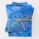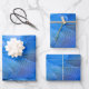 Double initials monogrammed blue feather wing bird wrapping paper sheet