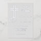 This beautiful wedding invitation in your choice of gold, silver, or rose gold foil with a silver grey background gives a sense of elegance to your wedding! The front left has a beautiful double line cross with two hearts at the foot of it. Your wedding text is at the right of the image. The back of the invitation is matching silver grey. Elegant for any season!