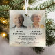 Memorial christmas ornament featuring 2 photos of the people who are being remembered, their names, and a sympathy quote.