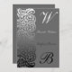 Ultra elegant white to black damask wedding invitation with double monogram is especially suited to a formal second marriage.