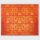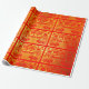 Red Chinese paper-cut with two rabbits and traditional Chinese house + lanterns and wishes for Happy New Year + golden textured paper (image printed) as background. Design on wrapping paper.