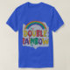 This t-shirt design celebrates the wonder of nature! "Double Rainbow!" is splashed across the front in a playful, multi-coloured font. Two vibrant rainbow arcs top off the design, making it a bright and joyful statement.