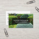 This cool local landscaping business card template is designed as a double side business card with image of sculpted landscaped shrubs in the background.
