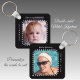 Double sided 2 photos name black purple key ring