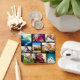 Black shadowed personalised 9 photo collage template rounded corners metal keychain.
