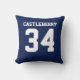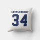 Add a name and number(s) to personalise this custom double-sided blue and white sports jersey inspired accent pillow. It is an excellent gift for a sports fan or athlete. The options to change the colour and font sizes are available.