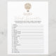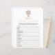 This double sided game card features word scramble on the front and bingo on the back, and is perfect for a baby shower or baby sprinkle. This word scramble bingo game features a boho beige watercolor hot air balloon. Perfect for a gender neutral celebration. You can personalise this design by clicking on "Personalise this template" or if you wish to change the font, colours or arrange the design elements in a different way you can click on "Edit using Design Tool". Answer Key: 1. Diaper 2. Bassinet 3. Bottle 4. Crib 5. Pacifier 6. Changing Table 7. Stuffed Animal 8. Stroller 9. Rubber Ducky 10. Blanket 11. Teether 12. Formula 13. High Chair 14. Mobile 15. Thermometer 16. Baby 17. Milk 18. Booties 19. One-sie 20. Teddy Bear