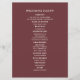 Double-sided burgundy/rust and white wedding program/bridal party listing.