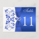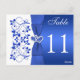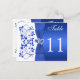 This romantic cobalt or royal blue and white floral double-sided table number post card has a blue PRINTED ribbon and bow with a pair of PRINTED diamond jewel and blue FAUX glitter joined hearts on it that matches the wedding invitation shown below. You must customise the card for EACH table number that you need, by changing the "11" to each number you need, adding it to your cart, and then repeating the process until you have the correct number of individual cards in your cart. If you have any questions, email niteowlstudio@gmail.com.