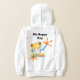 Oh Hoppy Day on the Back with a High-Fiveing Tree Frog and a Face on the Front. You can change the words, background colour and the colour of the Hoodie to make this design all your own.