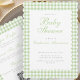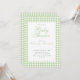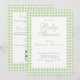 A cute and classy double sided invitation for a gender neutral baby shower featuring a sage green gingham with a scalloped edge. The back has space for information about the baby registry and other events for the party. Add the website to the QR code to personalize the scannable section of the invitation for your guests. Perfect for an elegant baby shower to welcome your new arrival.